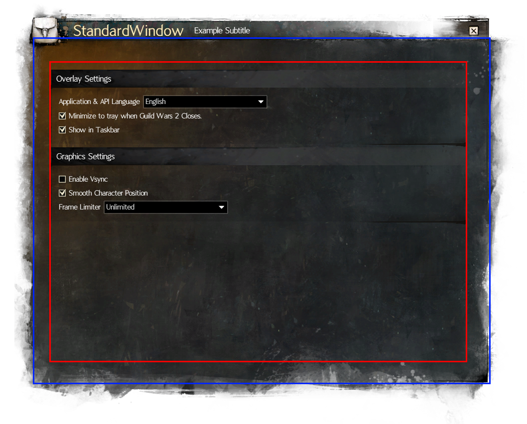 The StandardWindow is a control meant to replicate the standard Guild Wars 2 windows.