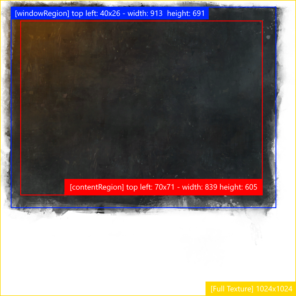 windowRegion | The bounds which represent the "rigid" portion of the window - just inside of the softer outer border. |