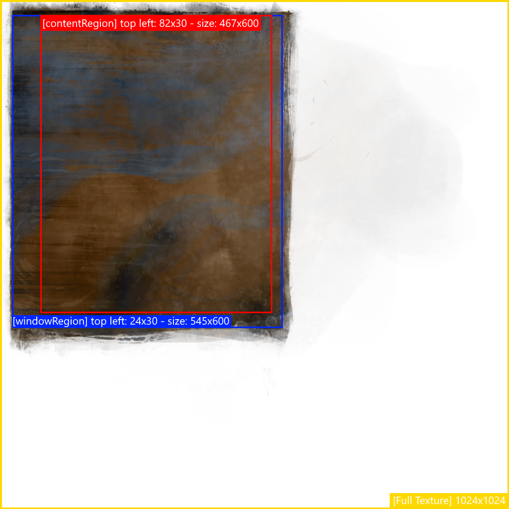 windowRegion | The bounds which represent the "rigid" portion of the window - just inside of the softer outer border. |
